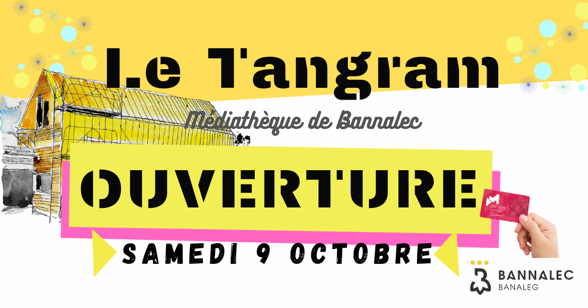 Samedi 9 octobre, le Tangram ouvre ses portes. Rendez-vous Passage Auguste Bizeux à Bannalec pour découvrir la nouvelle médiathèque et ses services.